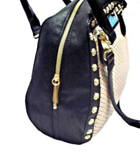 Betsey's Tuxedo Park satchel is chic and functional and features a  peekaboo mesh with silver or gold underlay.  As an added touch, the  front of the bag has silver or gold metal hardware detail with petite  rose studs. Flat bottom with stud feet for protection.